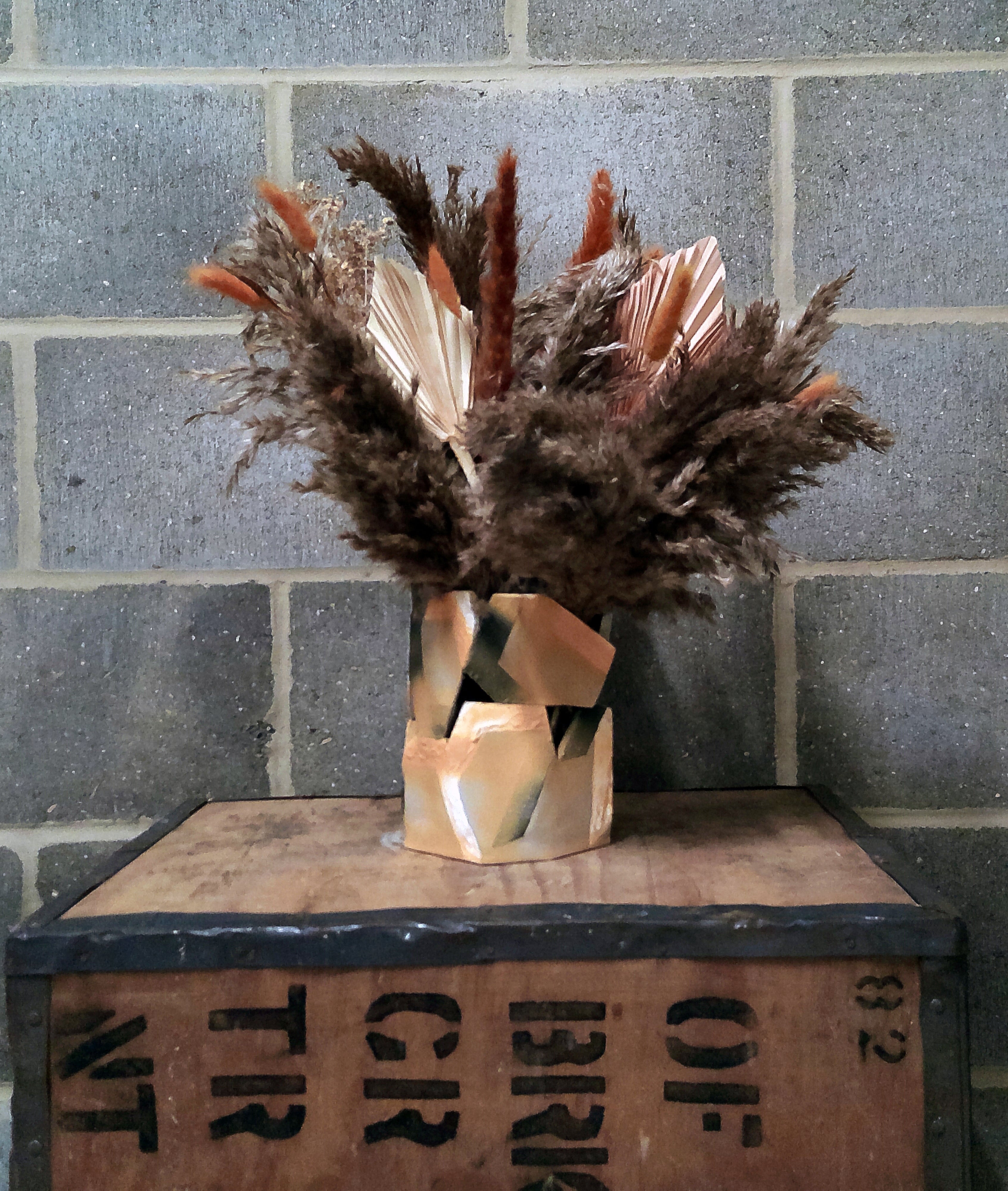 Handcrafted from natural stoneware clay using traditional hand-building techniques, this geometric vase brings urban art into modern interiors. Each piece is finished with hand-painted and sprayed graffiti-inspired details, making every vase completely unique. Perfect as a sculptural accent or for displaying fresh or dried blooms.